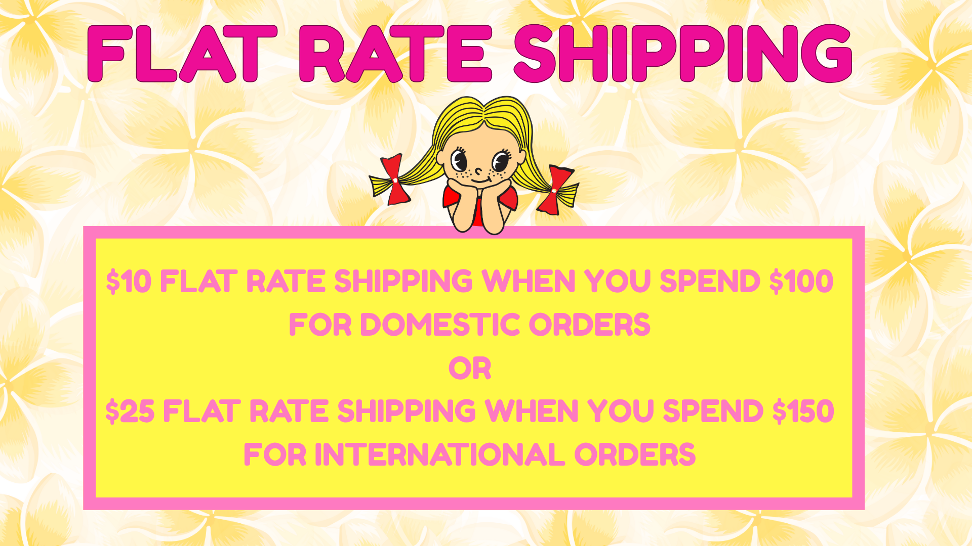 $10 Flat Rate Shipping when you spend $100 or more on Domestic Orders and $25 Flat Rate Shipping when you spend $150 or more on International Orders.